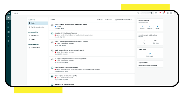 È il sistema di ticketing, il cuore di Zendesk. Racchiude tutti i canali di contatto, dalla mail ai social, consentendo agli attori dei diversi reparti aziendali di comunicare all’interno dello stesso ticket. Permette l’assegnazione, il monitoraggio e la risoluzione dei ticket, fornendo ai tuoi clienti risposte personali ed efficienti.