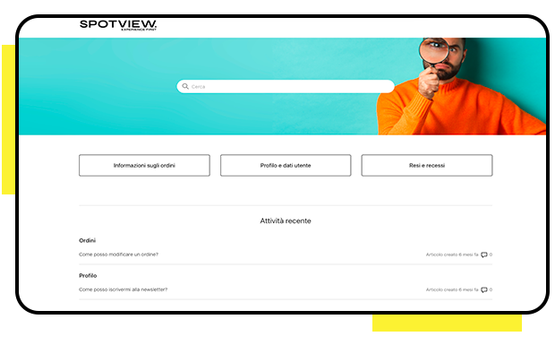 È la knowledge-base per un’assistenza self-service, dove pubblicare FAQ o procedure sia per i tuoi utenti finali che per gli operatori. È facilmente configurabile e aggiornabile direttamente da parte dell’operatore e, grazie all’integrazione nativa con Support, fornisce l’articolo giusto all’interno del ticket.