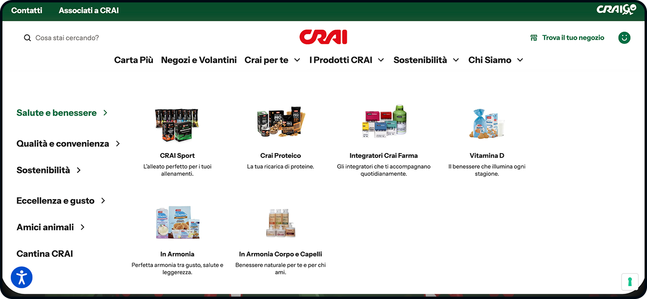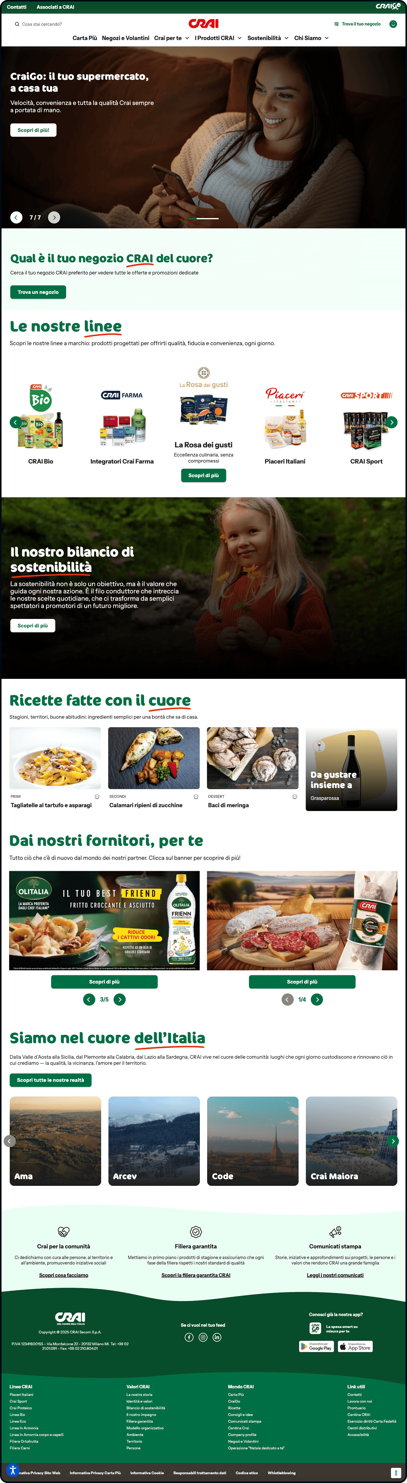 CRAI è uno dei nomi più riconoscibili della GDO italiana, con una storia ricca e un posizionamento distintivo nel mercato. Voleva modernizzare l’esperienza digitale, rafforzare l’identità di marca e creare una piattaforma capace di valorizzare le diverse anime dell’azienda, dalle linee di prodotto alle ricette, dalla cantina dei vini alle news aziendali, mantenendo coerenza e chiarezza comunicativa.